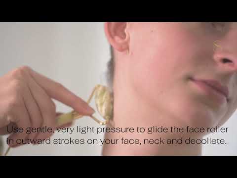 - Use gentle, very light pressure to glide the face roller in outward strokes on your face, neck and decollete.